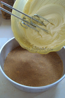 | Flatten the cake nicely. I know I didn't do a good job. Cause I really don't know how to make it flat. |
